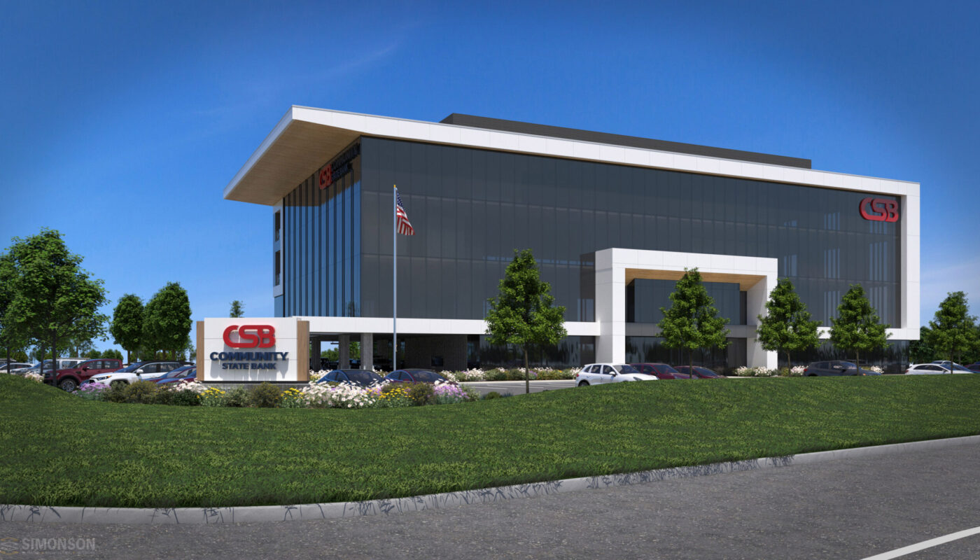 - This four-story, 76,500-square-foot building consolidates all Community State Bank offices into a single location, providing a central hub for operations.