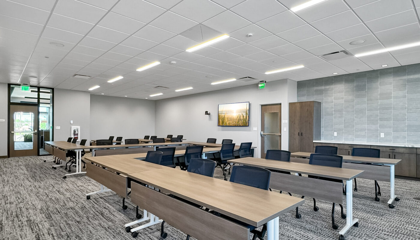 - A glass-surrounded, grand open stair faces the corner of Hickman and NW 156th Street, creating a prominent presence at the primary intersection entering Clive from the west.